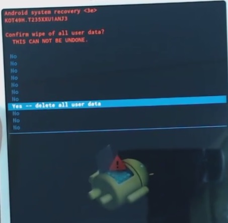 Bu ekrana ulaştığınızda wipe data/factory reset seçeneğini seçmelisiniz. Seçim için ses açma veya kapatma ile menüde dolaşabilir, güç düğmesi ile de seçim gerçekleştirebilirsiniz.