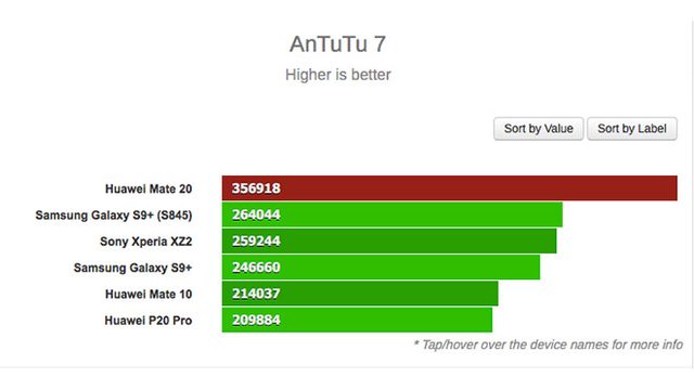 Sonuçlara göre Kirin 980 ile gelecek olan Mate 20 satışa çıkmamasına rağmen AnTuTu performansıyla ters köşe yaptı. 356 bin 918 puan alarak en hızlı telefon oldu. Bu bakımdan iPhone X, Samsung Galaxy S9, Sony Xperia XZ2 gibi birçok rakibine fark attı.